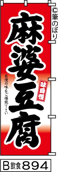 【送料無料】【麻婆豆腐】のぼり旗【キャンセル不可-12営業日以内に発送-ポスト投函】赤と白に黒の目立つ手書き筆文字[894]