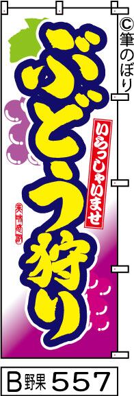 【送料無料】【ぶどう狩り】のぼり旗【キャンセル不可-12営業日以内に発送-ポスト投函】白と紫に黄色の目立つ手書き筆文字[557]