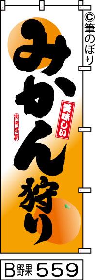 【送料無料】【みかん狩り】のぼり旗【キャンセル不可-12営業日以内に発送-ポスト投函】白とオレンジ色に黒の目立つ手書き筆文字[559]