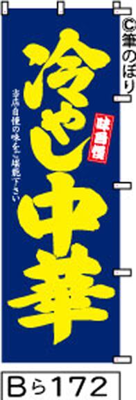 【送料無料】【冷やし中華】のぼり旗【キャンセル不可-12営業日以内に発送-ポスト投函】紺に黄色の目立つ手書き筆文字[172]