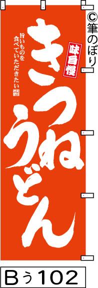 【送料無料】【きつねうどん】のぼり旗【キャンセル不可-12営業日以内に発送-ポスト投函】朱色に白の目立つ手書き筆文字[102]