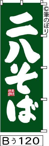 【送料無料】【二八そば】のぼり旗【キャンセル不可-12営業日以内に発送-ポスト投函】緑に白の目立つ手書き筆文字[120]