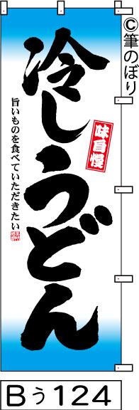 【送料無料】【冷やしうどん】のぼり旗【キャンセル不可-12営業日以内に発送-ポスト投函】白地に水色枠黒の目立つ手書き筆文字[124]