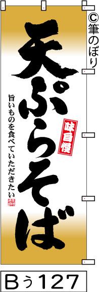 【送料無料】【天ぷらそば】のぼり旗【キャンセル不可-12営業日以内に発送-ポスト投函】白地に狐色枠黒の目立つ手書き筆文字[127]