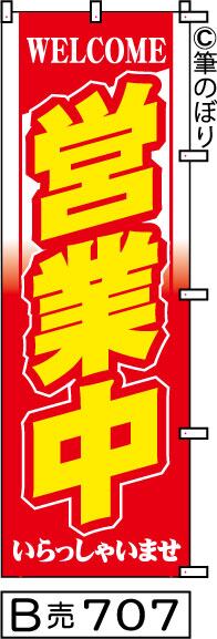 【送料無料】【営業中】のぼり旗【キャンセル不可-12営業日以内に発送-ポスト投函】赤に黄色の目立つ手書き筆文字[707]