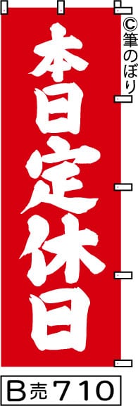 【送料無料】【本日定休日】のぼり旗【キャンセル不可-12営業日以内に発送-ポスト投函】赤に白の目立つ手書き筆文字[710]