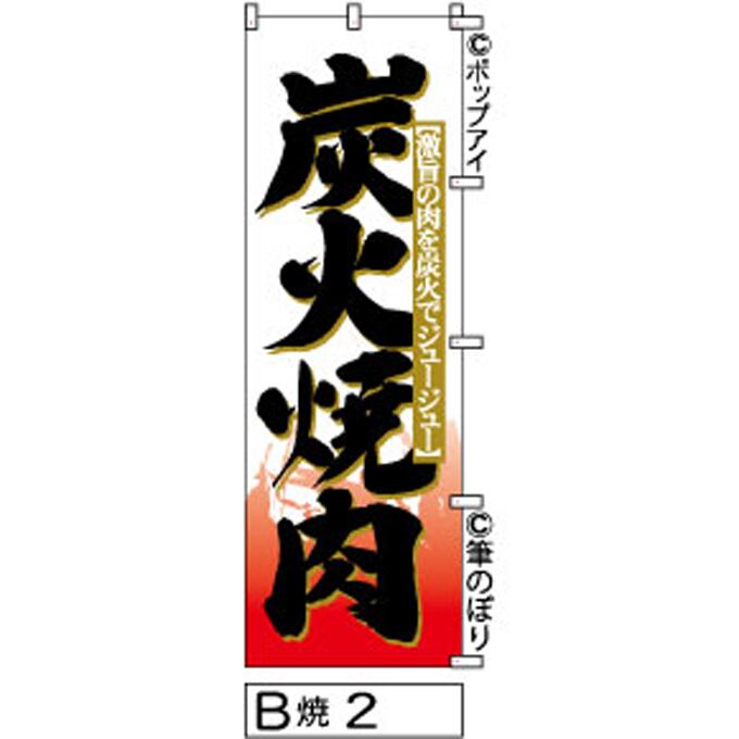 【お得な2枚セット】【送料無料】【炭火焼肉】のぼり旗【キャンセル不可-12営業日以内に発送-ポスト投函】白地に赤炎黒の目立つ手書き筆文字[002]