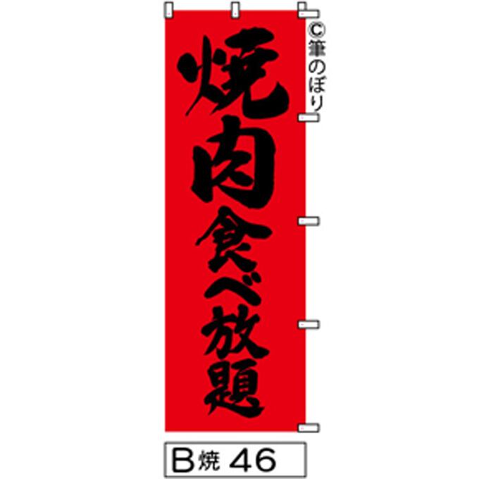 【お得な2枚セット】【送料無料】【焼肉食べ放題】のぼり旗【キャンセル不可-12営業日以内に発送-ポスト投函】赤に黒の目立つ手書き筆文字[046]