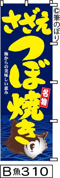 【お得な2枚セット】【送料無料】【さざえつぼ焼き】のぼり旗【キャンセル不可-12営業日以内に発送-ポスト投函】紺に黄色の目立つ手書き筆文字[310]