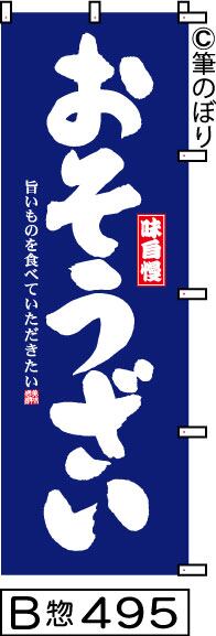 【お得な2枚セット】【送料無料】【おそうざい】のぼり旗【キャンセル不可-12営業日以内に発送-ポスト投函】紺に白の目立つ手書き筆文字[495]