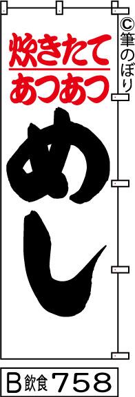 【お得な2枚セット】【送料無料】【めし】のぼり旗【キャンセル不可-12営業日以内に発送-ポスト投函】白に黒の目立つ手書き筆文字[758]