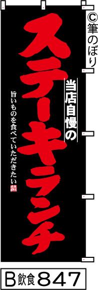 【お得な2枚セット】【送料無料】【ステーキランチ】のぼり旗【キャンセル不可-12営業日以内に発送-ポスト投函】黒に赤の目立つ手書き筆文字[847]