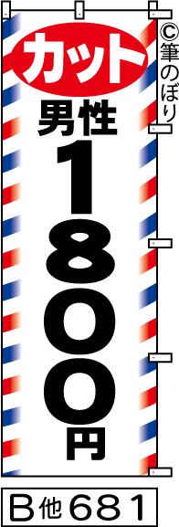 【お得な2枚セット】【送料無料】【カット男性1800円】のぼり旗【キャンセル不可-12営業日以内に発送-ポスト投函】白に黒の目立つ手書き筆文字[681]