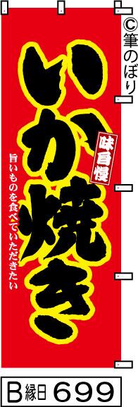 【お得な2枚セット】【送料無料】【いか焼き】のぼり旗【キャンセル不可-12営業日以内に発送-ポスト投函】赤に黒の目立つ手書き筆文字[699]
