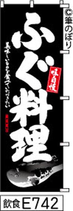 【送料無料】【ふぐ料理】のぼり旗【キャンセル不可-12営業日以内に発送-ポスト投函】黒に白の手書き筆文字[E742]