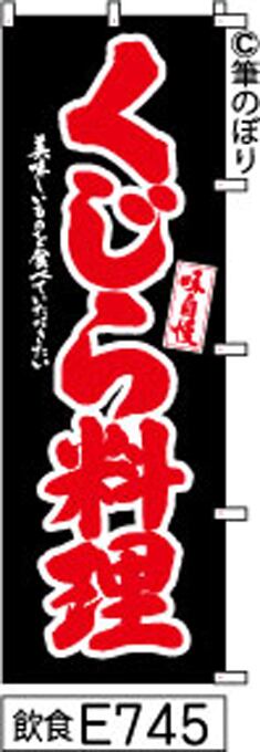 【送料無料】【くじら料理】のぼり旗【キャンセル不可-12営業日以内に発送-ポスト投函】黒に赤の手書き筆文字[E745]