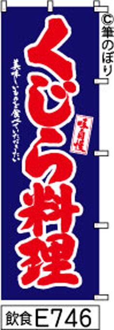 【送料無料】【くじら料理】のぼり旗【キャンセル不可-12営業日以内に発送-ポスト投函】紺に赤の手書き筆文字[E746]
