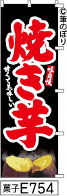 【送料無料】【焼き芋】のぼり旗【キャンセル不可-12営業日以内に発送-ポスト投函】黒に赤の手書き筆文字[E754]