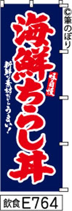 【送料無料】【海鮮ちらし丼】のぼり旗【キャンセル不可-12営業日以内に発送-ポスト投函】紺に赤の手書き筆文字[E764]