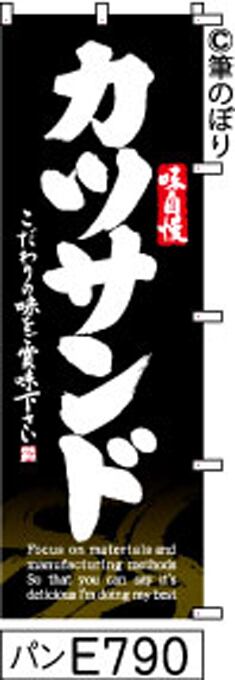 【送料無料】【カツサンド】のぼり旗【キャンセル不可-12営業日以内に発送-ポスト投函】黒に白の手書き筆文字[E790]