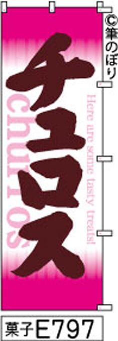 【送料無料】【チュロス】のぼり旗【キャンセル不可-12営業日以内に発送-ポスト投函】ピンクに茶色の手書き筆文字[E797]
