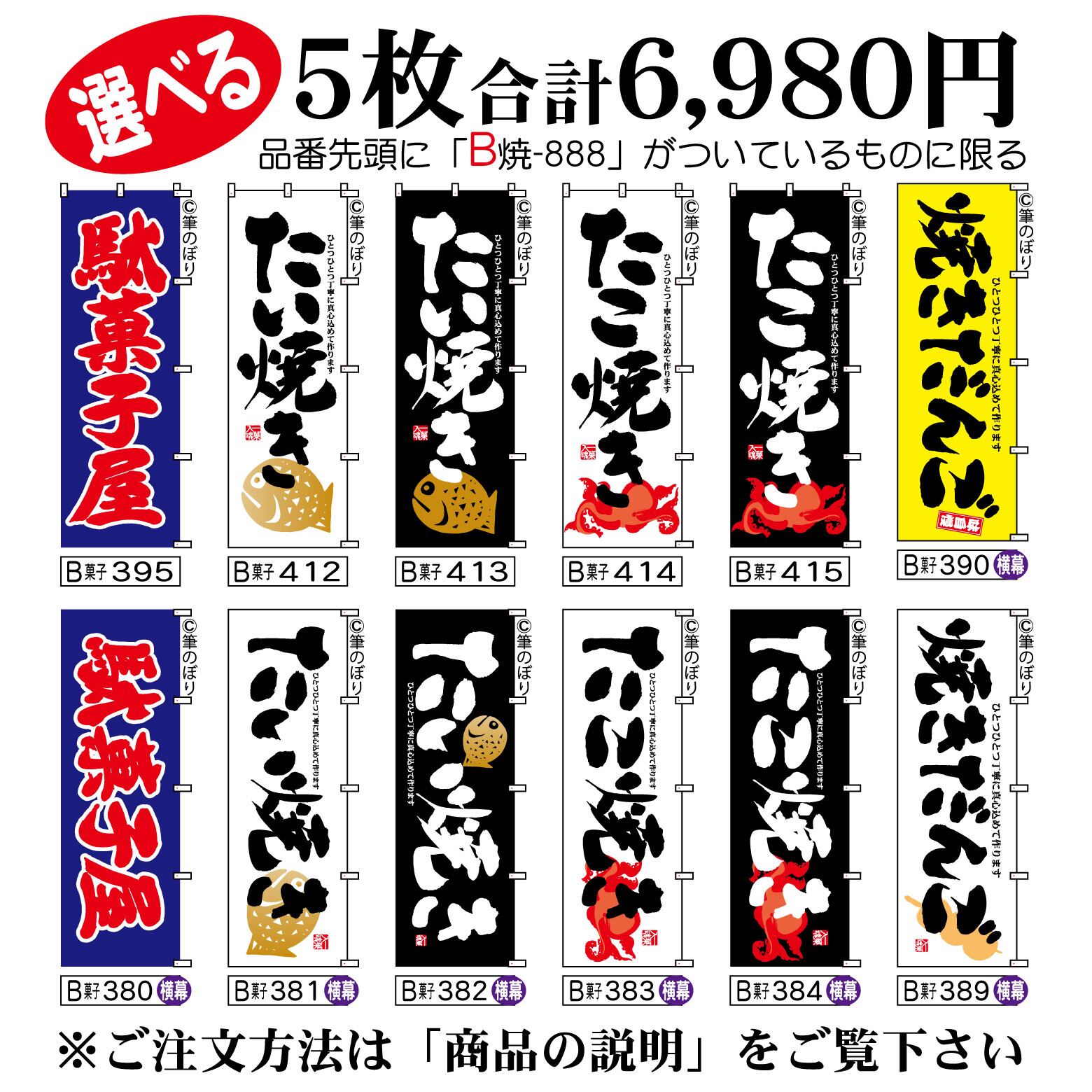 【送料無料-選べる5枚セット】駄菓子屋 のぼり旗|たこ焼き たい焼き 他11種|手書き筆文字[b5-022]