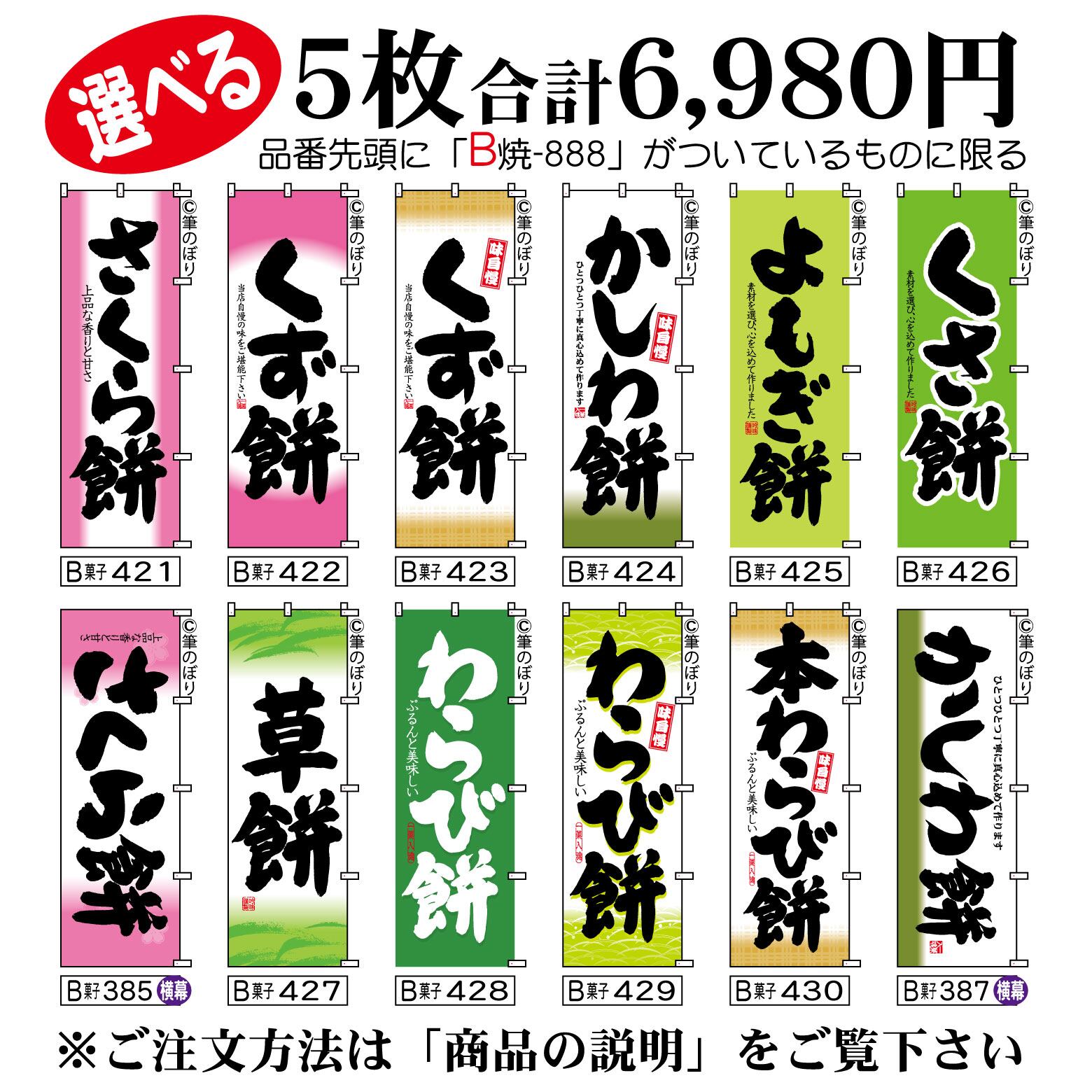 【送料無料-選べる5枚セット】さくら餅 のぼり旗|柏餅 わらび餅 他11種|手書き筆文字[b5-028]