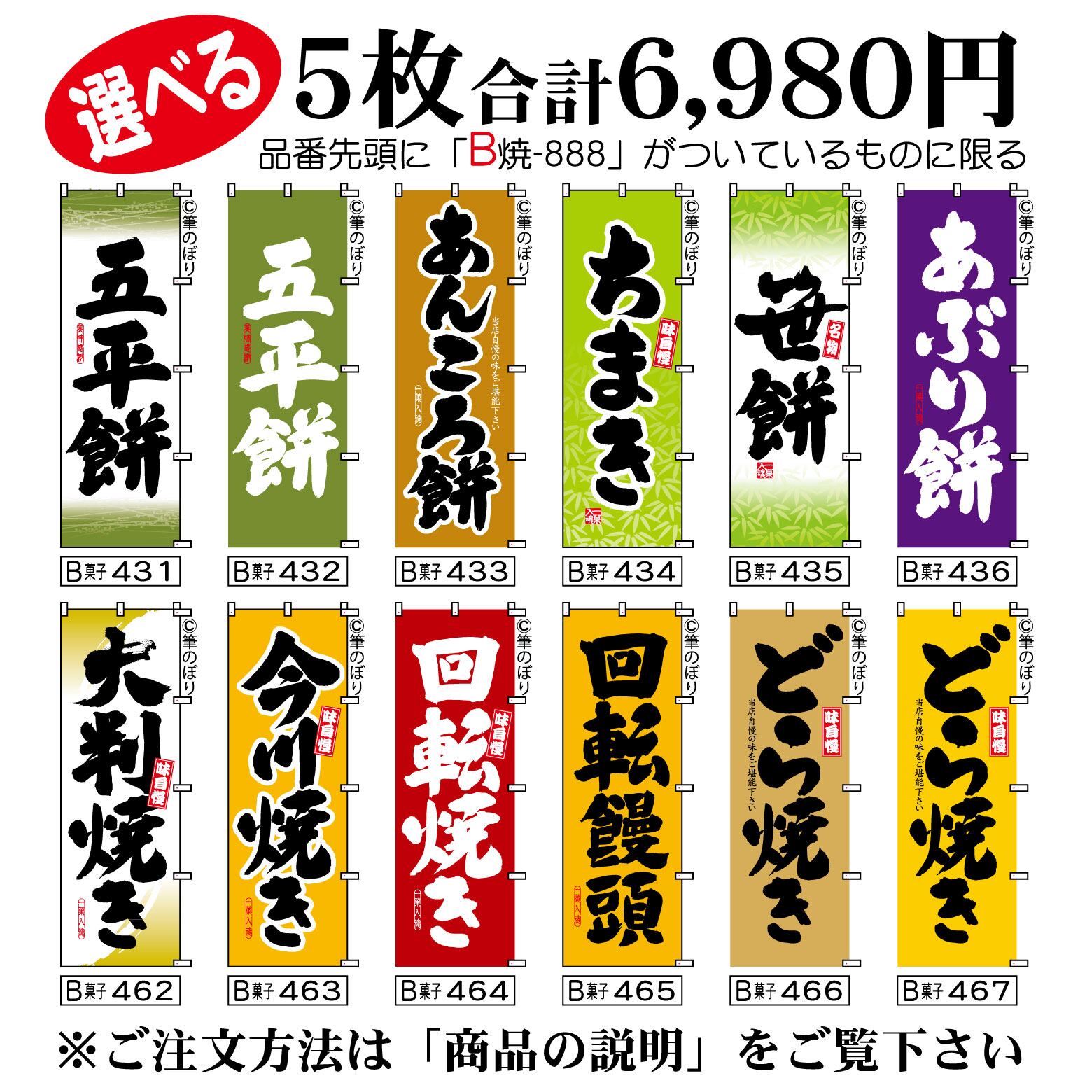 【送料無料-選べる5枚セット】どら焼き のぼり旗|五平餅 今川焼き 他11種|手書き筆文字[b5-029]