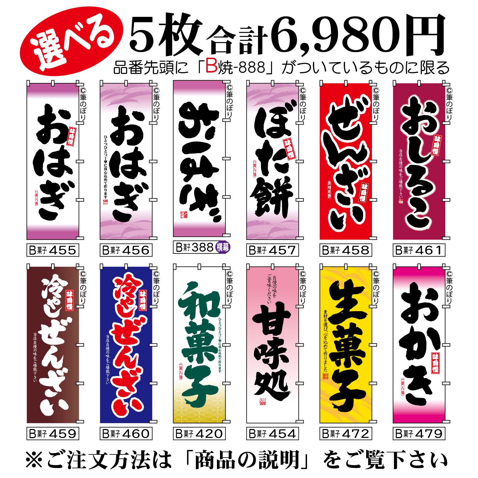 【送料無料-選べる5枚セット】おはぎ のぼり旗|ぼた餅 ぜんざい 他11種|手書き筆文字[b5-030]
