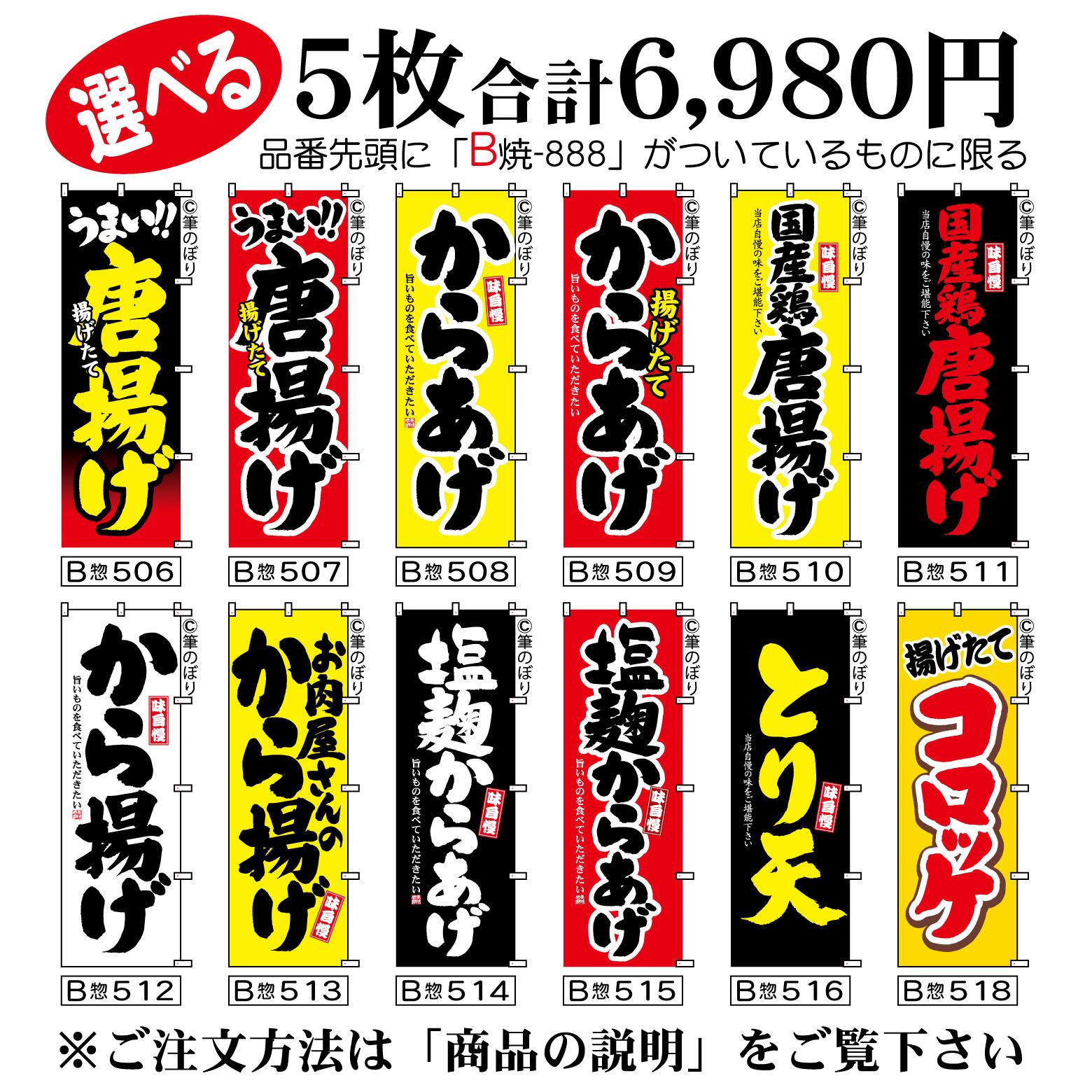 【送料無料-選べる5枚セット】唐揚げ のぼり旗|国産鶏からあげ 塩麹から揚げ 他11種|手書き筆文字[b5-032]