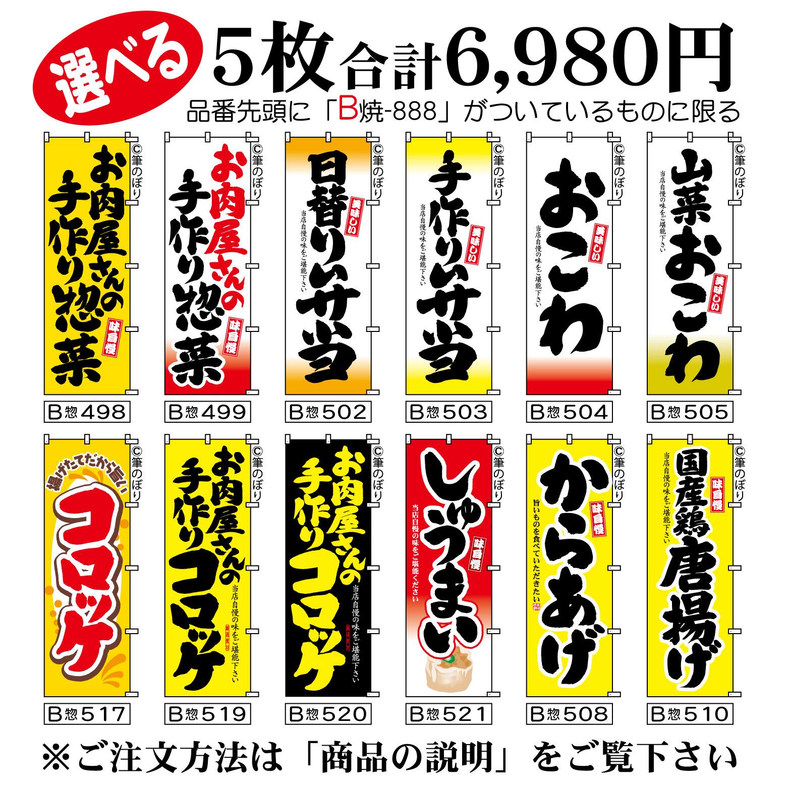【送料無料-選べる5枚セット】お肉屋さんの手作り惣菜 のぼり旗|日替わり弁当 コロッケ 他11種|手書き筆文字[b5-033]