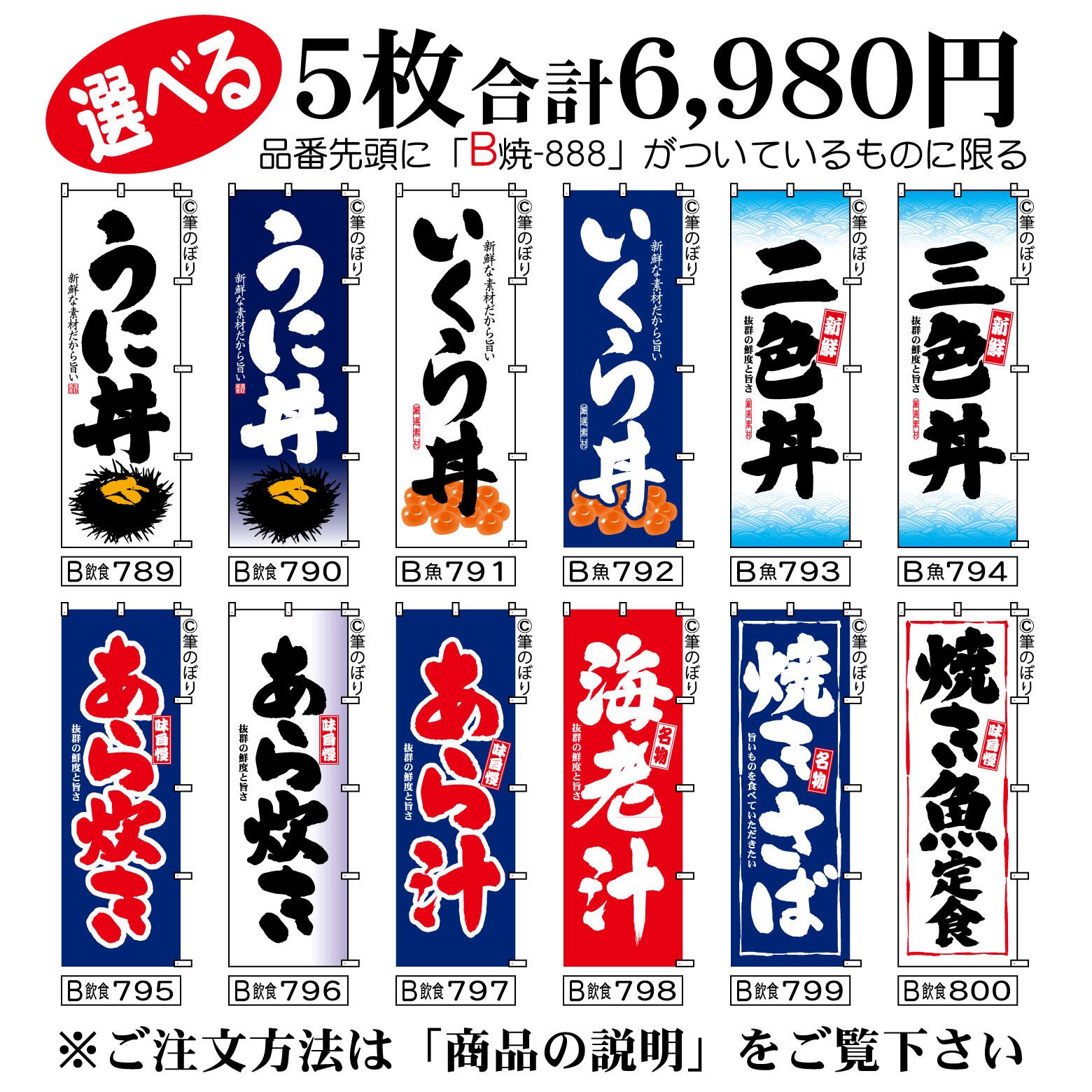 【送料無料-選べる5枚セット】うに丼 のぼり旗|いくら丼 焼き魚定食 他11種|手書き筆文字[b5-065]