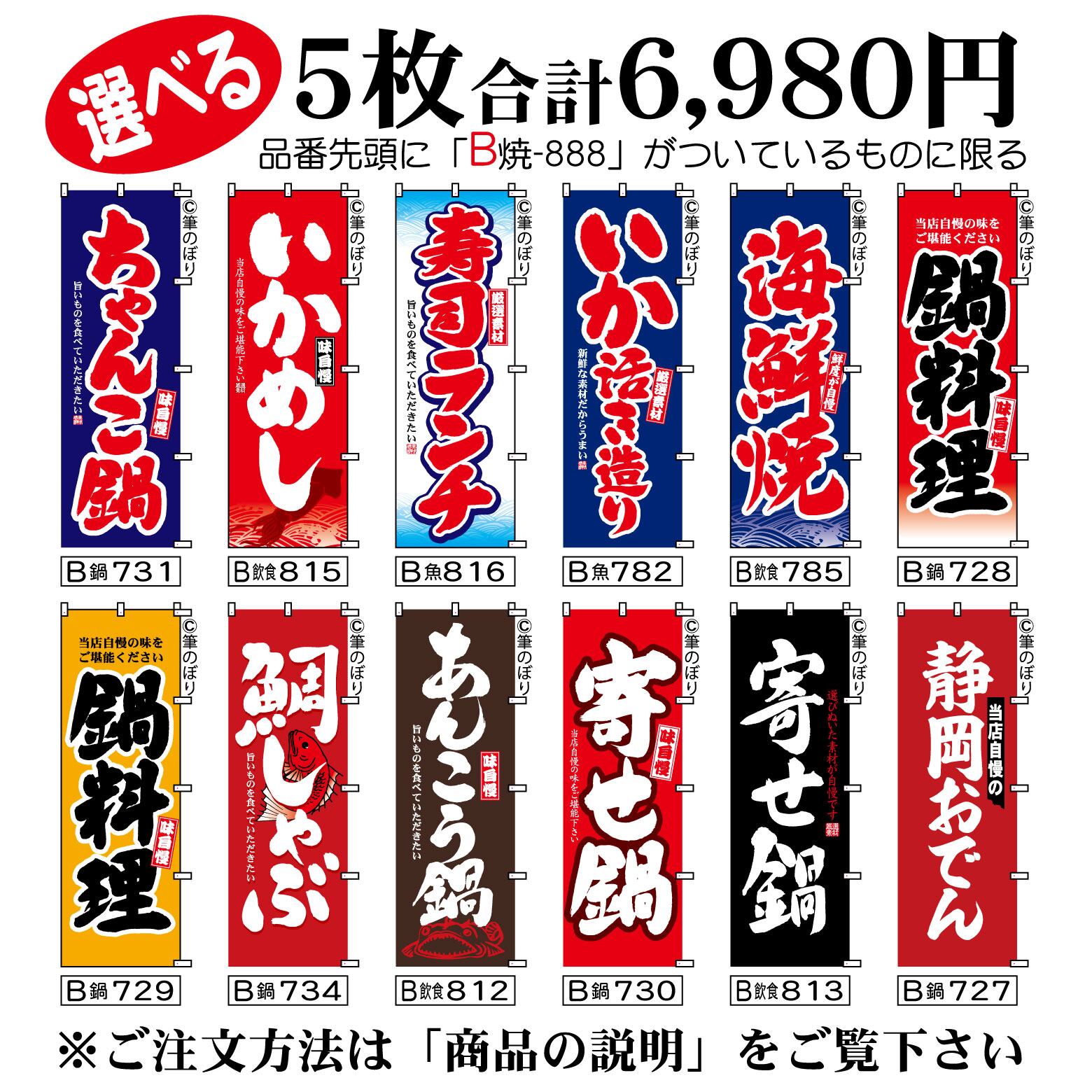 【送料無料-選べる5枚セット】鍋料理 のぼり旗|ちゃんこ鍋 寄せ鍋 他11種|手書き筆文字[b5-067]