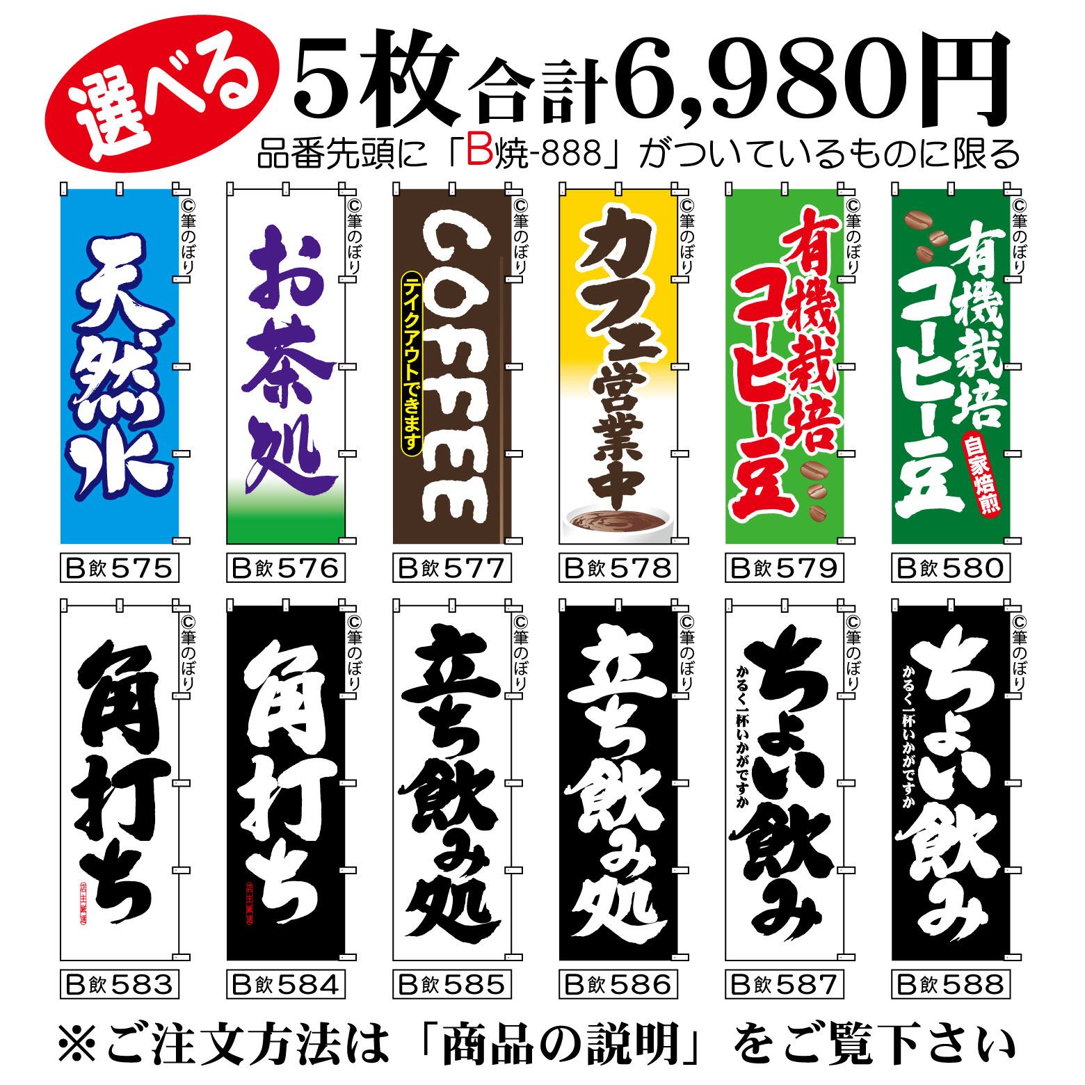 【送料無料-選べる5枚セット】角打ち のぼり旗|自家焙煎コーヒー豆 ちょい飲み 他11種|手書き筆文字[b5-039]