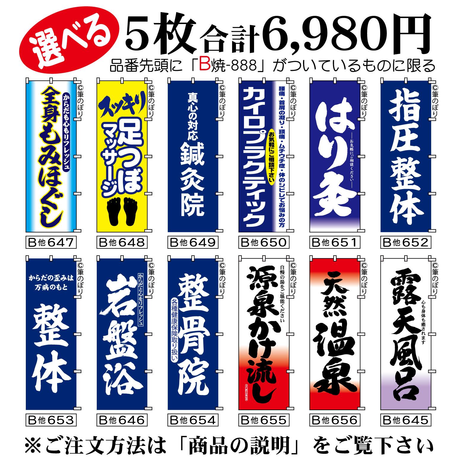 【送料無料-選べる5枚セット】天然温泉 のぼり旗|整骨院 鍼灸院 他11種|手書き筆文字[b5-045]