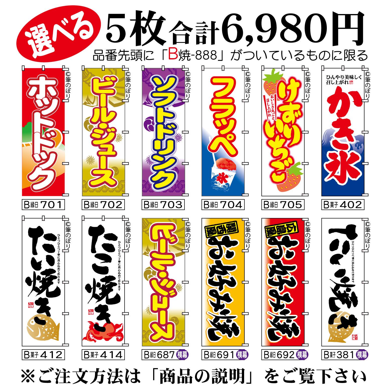 【送料無料-選べる5枚セット】ホットドック のぼり旗|けずりいちご たこ焼き 他11種|手書き筆文字[b5-058]