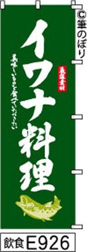 【イワナ料理】のぼり旗|送料無料 目立つ手書き筆文字[E926]濃緑に白