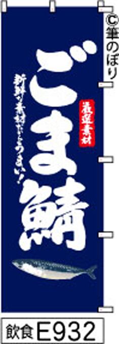 【ごま鯖】のぼり旗|送料無料 目立つ手書き筆文字[E932]紺に白