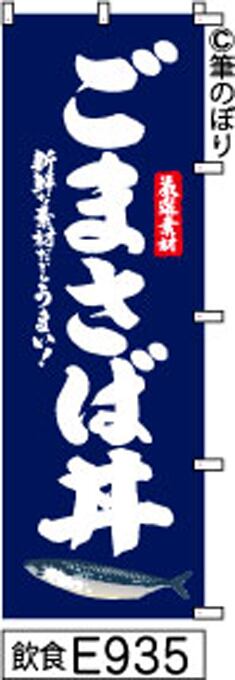 【ごまさば丼】のぼり旗|送料無料 目立つ手書き筆文字[E935]紺に白