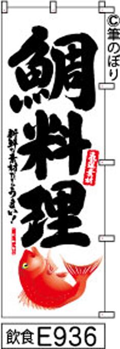 【鯛料理】のぼり旗|送料無料 目立つ手書き筆文字[E936]白地に黒