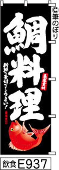【鯛料理】のぼり旗|送料無料 目立つ手書き筆文字[E937]黒に白