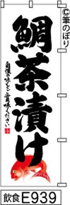 【鯛茶漬け】のぼり旗|送料無料 目立つ手書き筆文字[E939]白地に黒