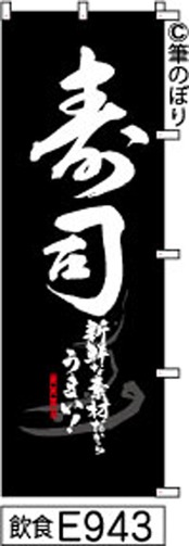 【寿司】のぼり旗|送料無料 目立つ手書き筆文字[E943]黒に白