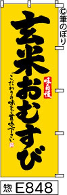 【玄米おむすび】のぼり旗|送料無料 目立つ手書き筆文字[E848]黄色に黒