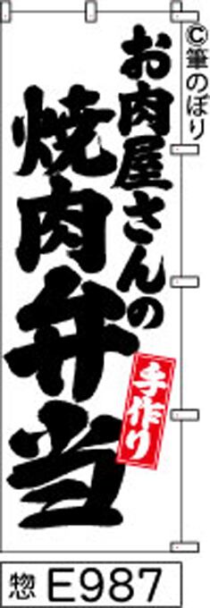 ■ **【お肉屋さんの焼肉弁当】のぼり旗|送料無料 目立つ手書き筆文字[E987] 白地に黒**