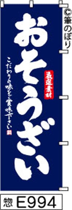 ■ **【おそうざい】のぼり旗|送料無料 目立つ手書き筆文字[E994] 紺に白**